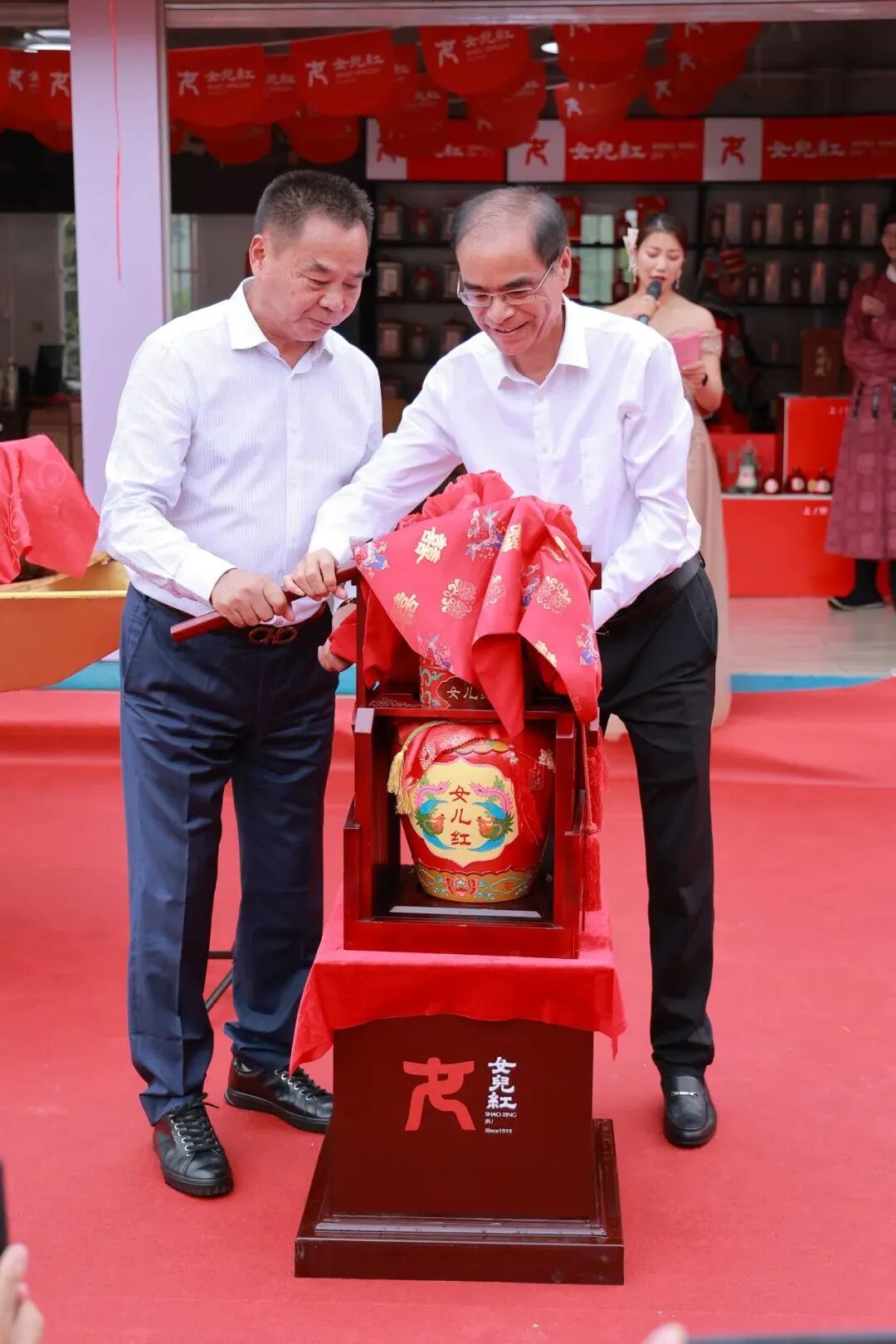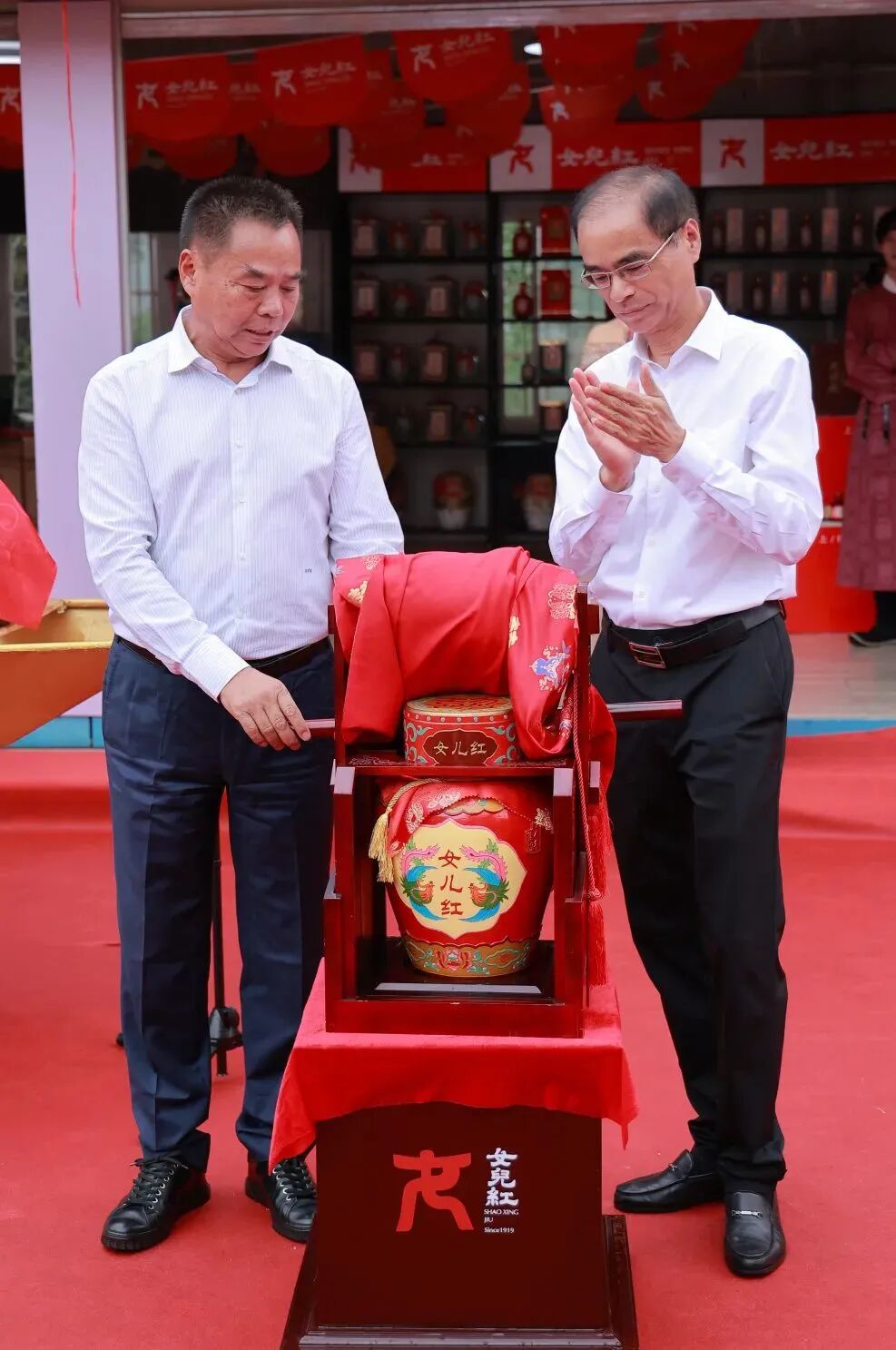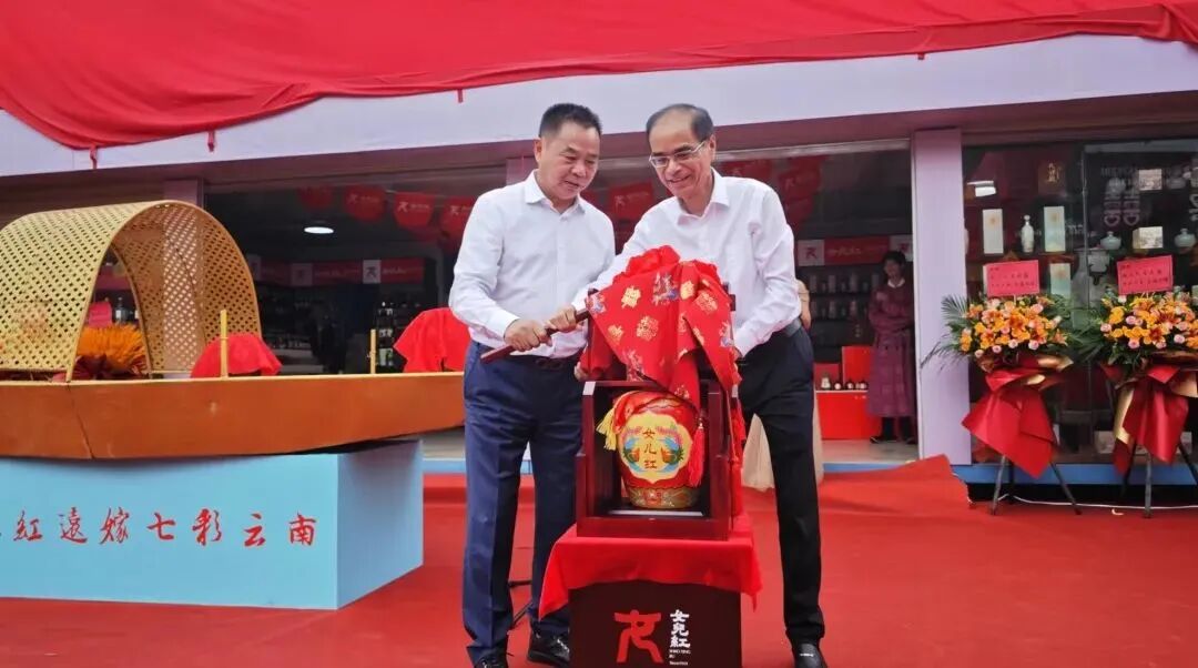 △绍兴黄酒行业协会会长徐明光、云南浙江商会会长沈长虹一起为女儿红昆明专卖店揭牌