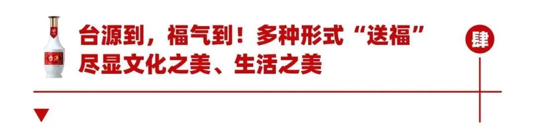 发布会邀请嘉宾品味台源酒,体味福文化,除了精彩的节目表演,主办方通过抽奖和伴手礼为嘉宾送上自强福、事业福、欢聚福、安康福、和美福等多份大礼。