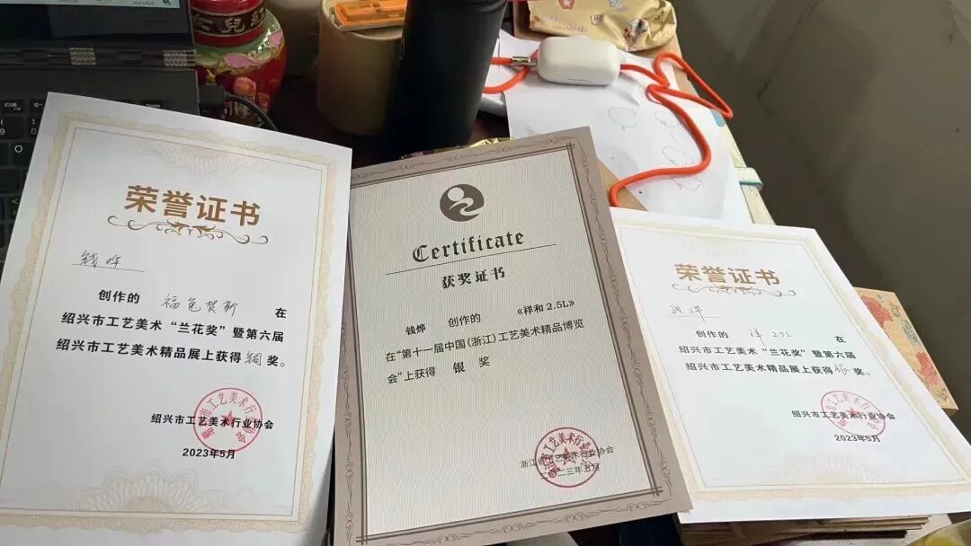 为切实提升企业产品质量,进一步扩大市场品牌影响力,“启航班”积极响应公司关于质量的相关要求。在公司“质量月”活动期间,9位学员参与质量知识竞赛,其中学员杨哲鸣、罗未分别获得二等奖、优胜奖;8位学员参与质量征文活动,其中学员杨哲鸣、项烨桦分别获得二等奖、三等奖。在产品设计方面,学员钱烨创作的《福兔贺新》在绍兴市工艺美术“兰花奖”暨第六届绍兴市工艺美术精品展上获得铜奖,作品《祥和2.5L》获得绍兴市工艺美术“兰花奖”暨第六届绍兴市工艺美术精品展银奖、第十一届中国(浙江)工艺美术精品博览会银奖,向公众展现新一代女儿红人的风采。