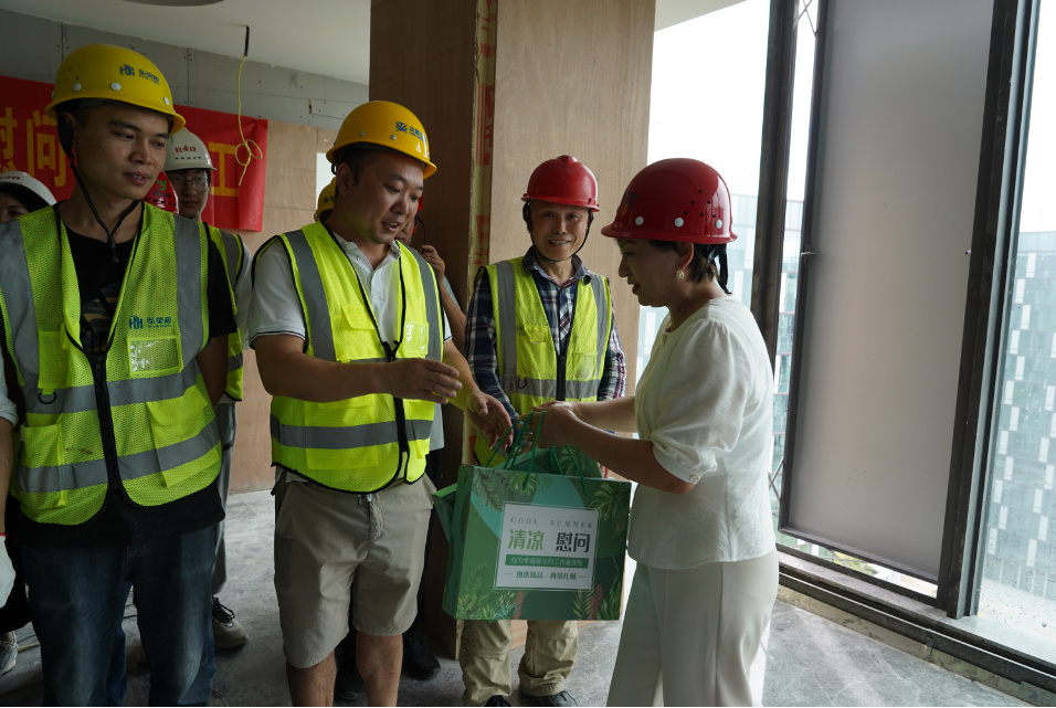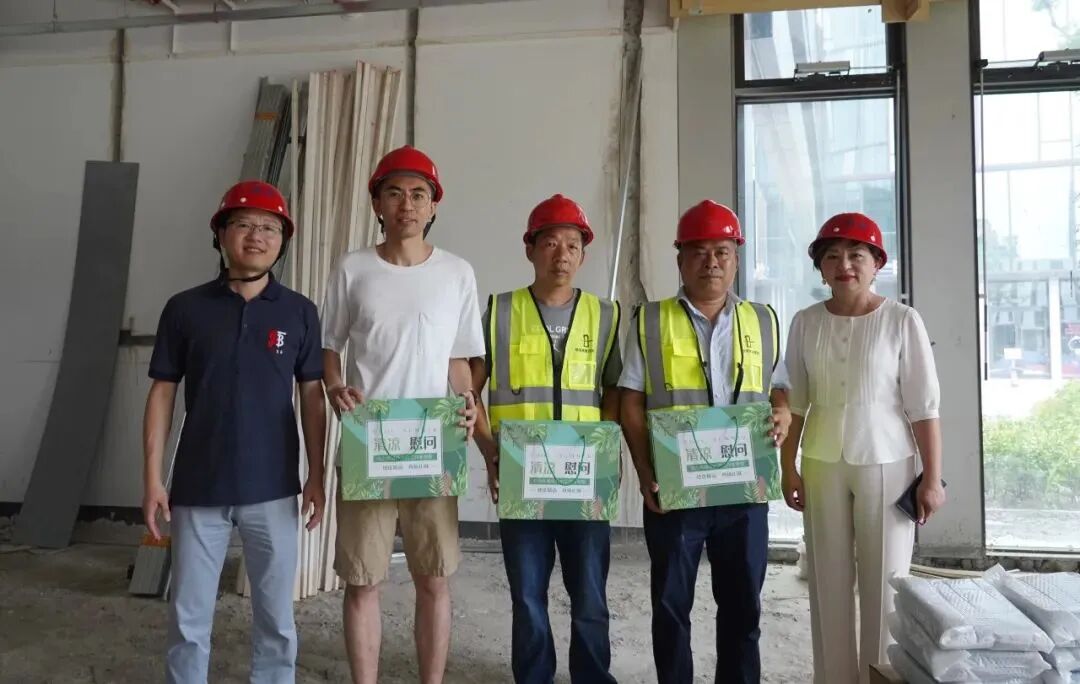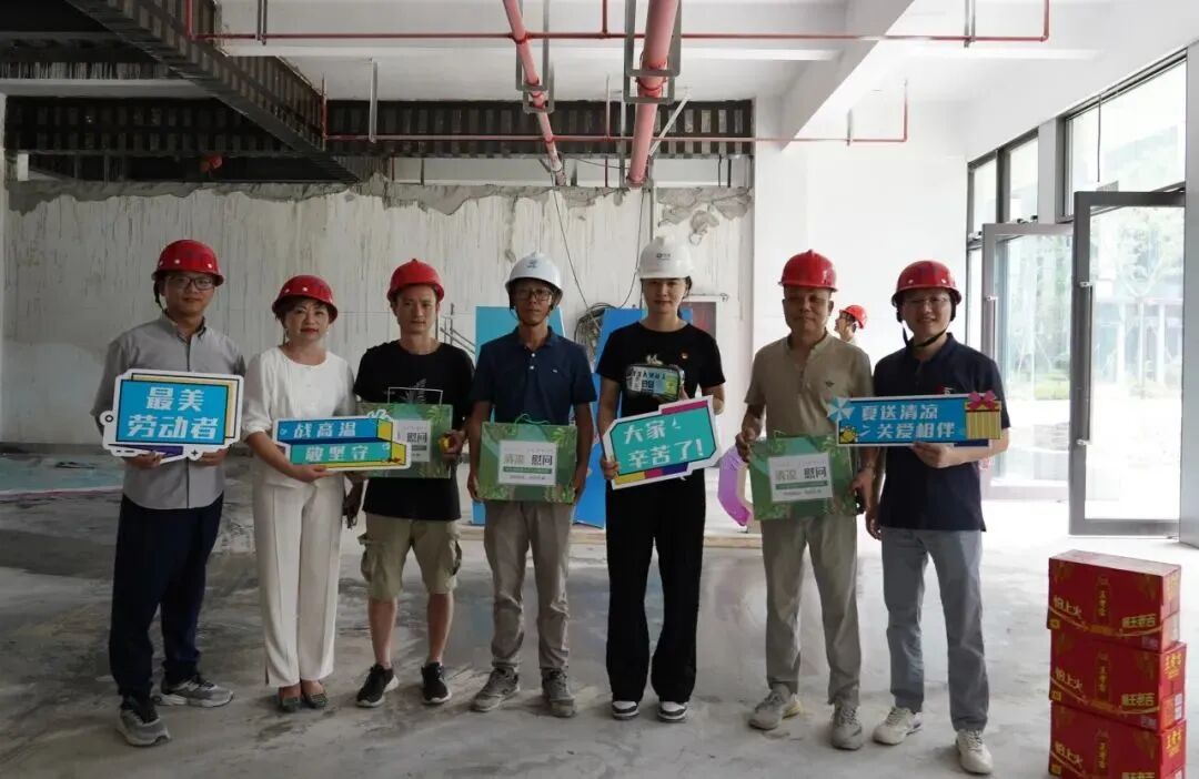物产天地中心是云商公司的“新家”,日前装修时间紧、任务重,公司多个部门职工长期进驻装修现场,钉工期钉质量,为及早乔迁做最后的冲刺。党委副书记万凡、资深经理戴晓敏代表公司赴施工现场开展高温慰问,给大家送上防暑降温药品、降暑饮料等清凉物资,并向坚守工地一线、辛苦付出的职工、工人们表达了诚挚的感谢,叮嘱要注意劳逸结合,确保身心健康、安全生产。