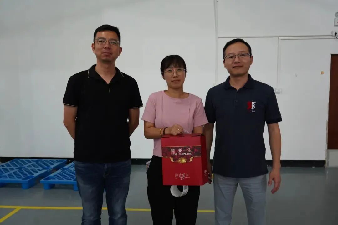 公司总经理陈灯红、党委副书记万凡看望、慰问了华妍科技与中大供应链仓库一线职工,详细了解了仓库运营状况、仓储物流工作,并对大家高温下的坚守表示感谢。