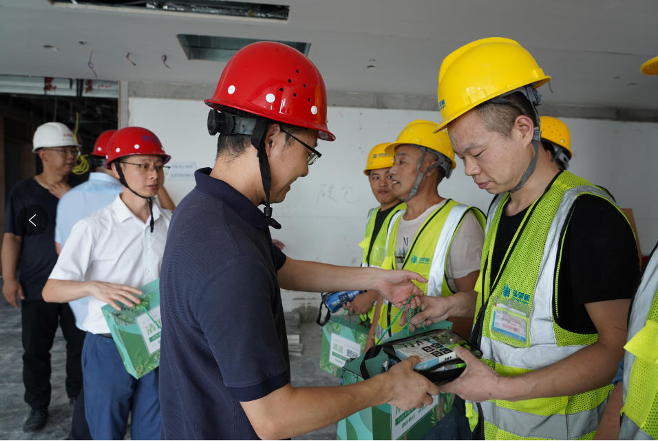 万凡一行还调研了解了新园区建设情况,询问了目前自用办公楼、产品线下体验中心、酒水自营门店三个项目装修进展,并对现场工人在高温下坚守一线表达了感谢与关怀。