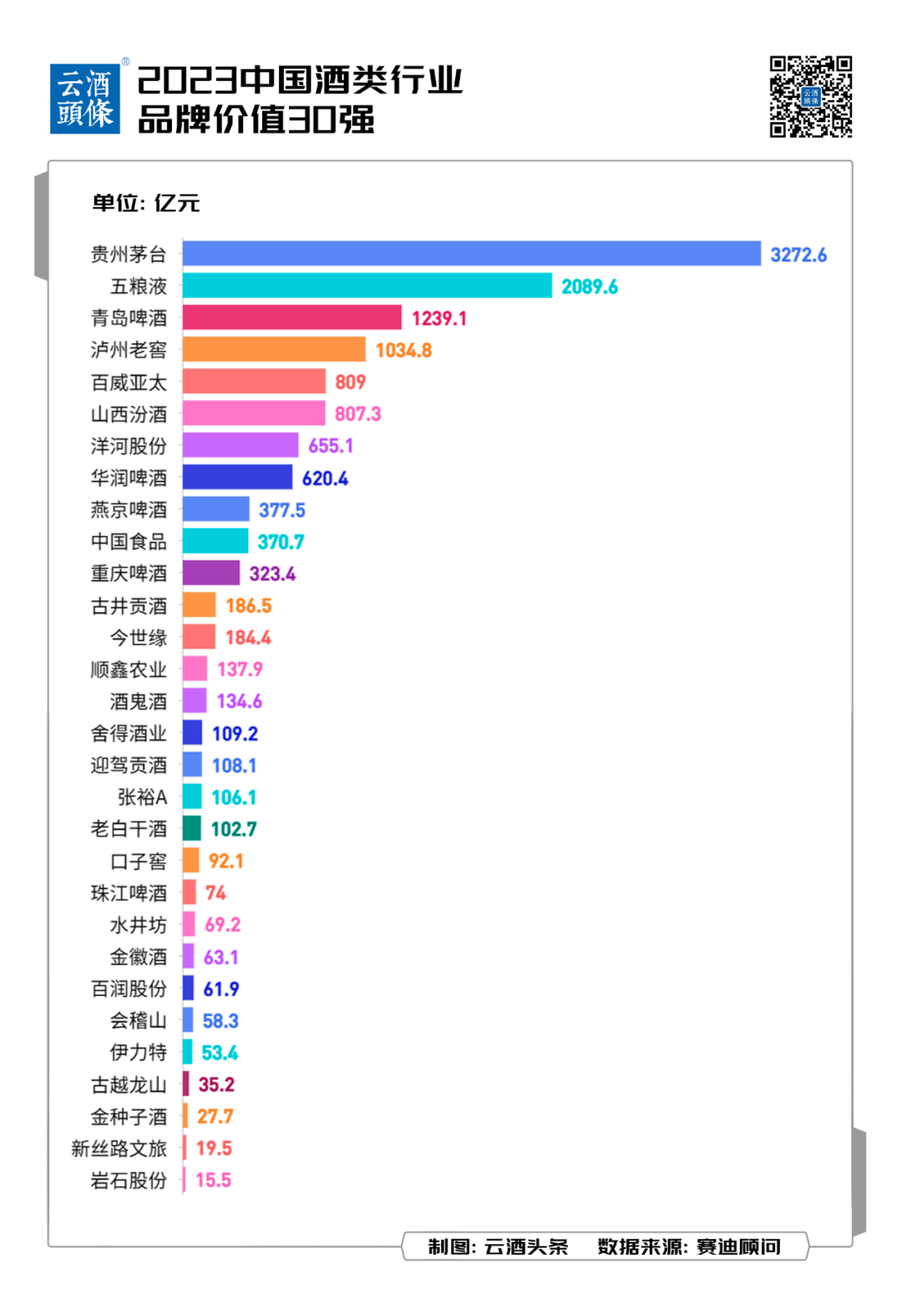 中国酒类行业品牌价值30强出炉近日,消费日报联合赛迪顾问发布了《2023中国酒类...