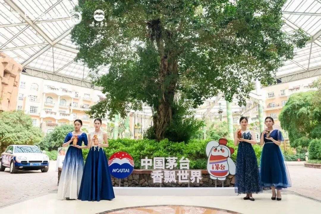 在第一世界大酒店热带雨林中庭,为推进茅台集团“一盘棋”建设,特别布置了茅台三大展区,让嘉宾充分了解茅台家族系列产品,茅台产品严谨的酿造工艺以及五合营销所蕴含的品牌营销逻辑。