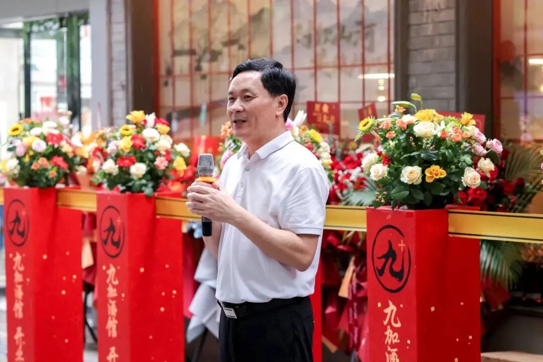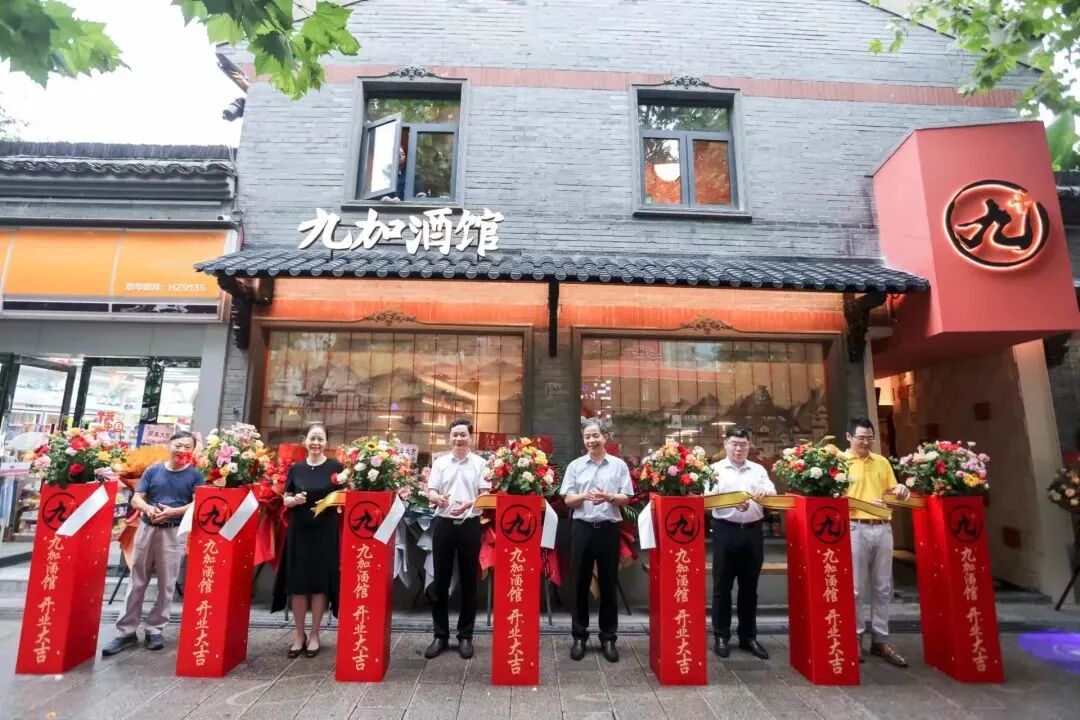 浙江广电集团党委委员、副总编辑许东良,杭州湖滨街道党工委书记芮佳南,浙江电视台民生休闲频道总监钱群,浙江大学营销管理研究所副所长、浙江大学管理学院教授戚译,绍兴黄酒集团党委书记、董事长孙爱保,浙江古越龙山绍兴酒股份公司副总经理柏宏,浙江龙山九加品牌管理有限公司董事长张国平等领导嘉宾出席开业仪式。