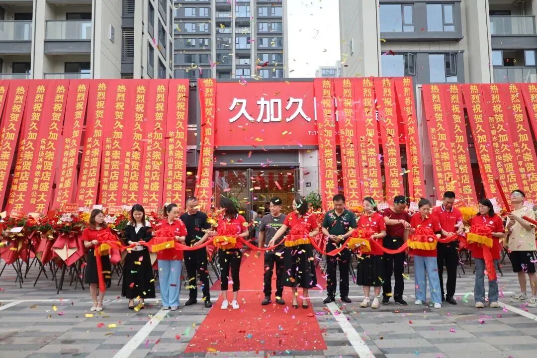 喜庆的音乐、缤纷的礼花,数位嘉宾手执金剪,共同为久加久临平崇贤店剪下精彩的一刀,红绸刚落,彩炮齐鸣、掌声响起,鞭炮声声传递美好祝愿,久加久临平崇贤店开业庆典在热闹喜庆的氛围中圆满结束,现场人气满满,热闹非凡。让我们共同祝愿新店新启航,祝各位来宾身体健康、万事如意!