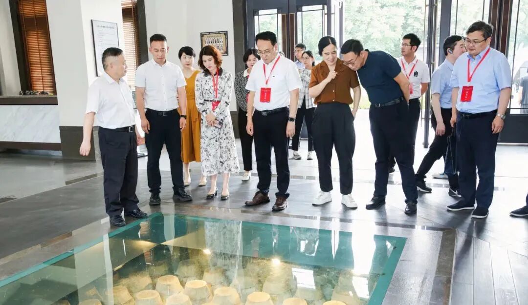 6月15日,为推进中国特色社会主义共同富裕先行,嘉兴市副市长邢海华等一行领导赴绍兴考察调研,探访会稽山绍兴酒股份有限公司(以下简称会稽山),湖塘街道党工委书记徐俊、湖塘街道党工委副书记潘国昌等人陪同调研。中国酿酒大师、会稽山首席酿酒师傅祖康热情接待。