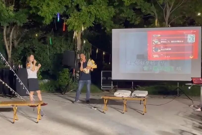 特别邀请到万总和戴总献唱一曲,又是一首全场大合唱,爱在云商奋斗日夜的每一个你们~