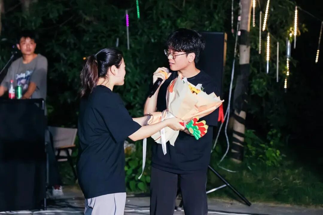 前奏一响起,观众们举起荧光棒在空中挥舞,挥出星星点点的星光,所有人徜徉在音乐和灯海中一起度过。