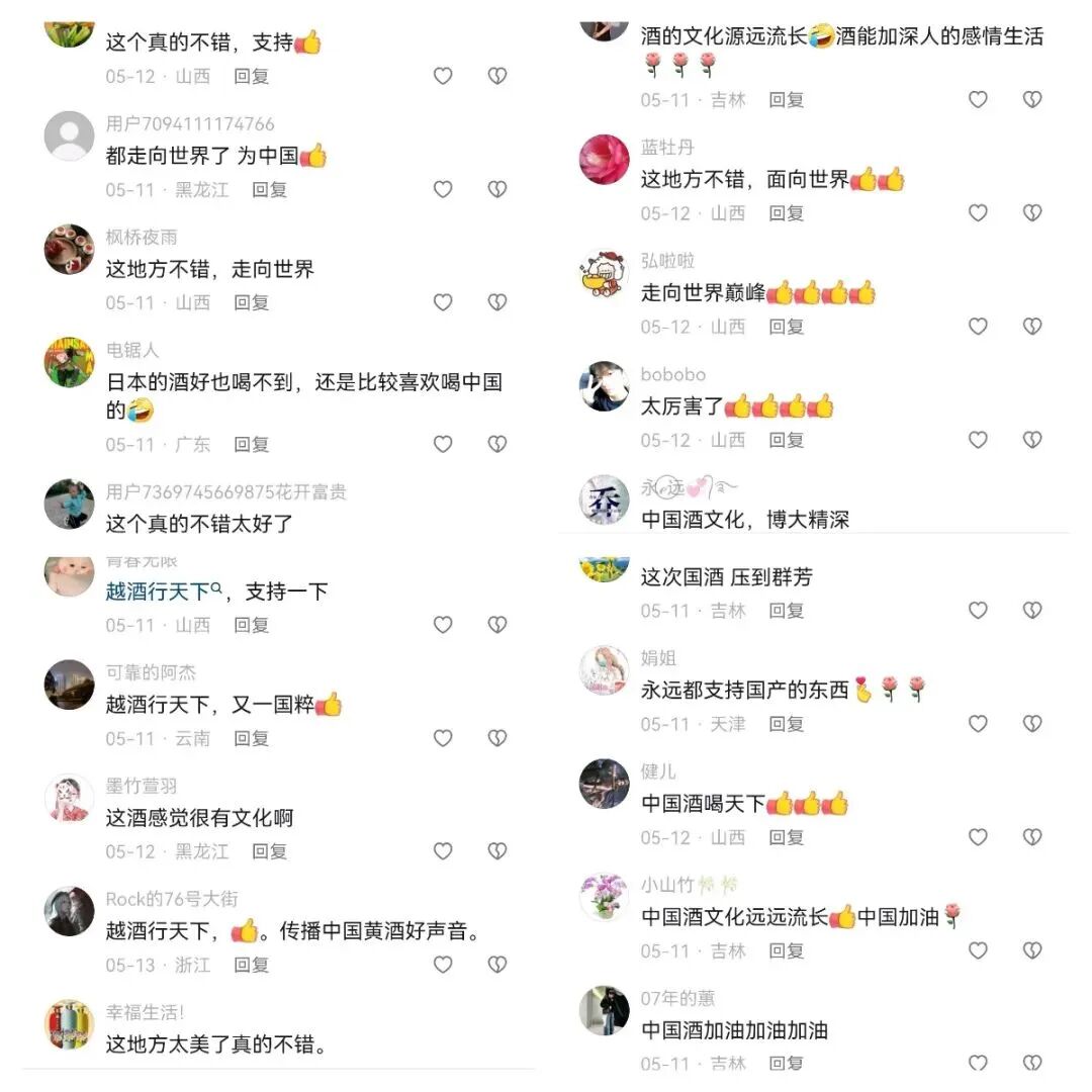 广大网友也对此次活动给予极大关注,并对此次活动带来的影响充满期待。网友Sap留言:越酒行天下,祝愿绍兴黄酒能携中国文化之风畅行海外;网友给心放假留言:“只此青绿、只此青玉”,希望古越龙山能够风靡日本;网友孔昕留言:衷心祝愿我们国粹黄酒,越来越好,让世界爱上东方味;网友郑什么雨留言:艺术、酒都是能跨越国界的,相信在只此青绿的赋能下,黄酒能焕发新的生机。