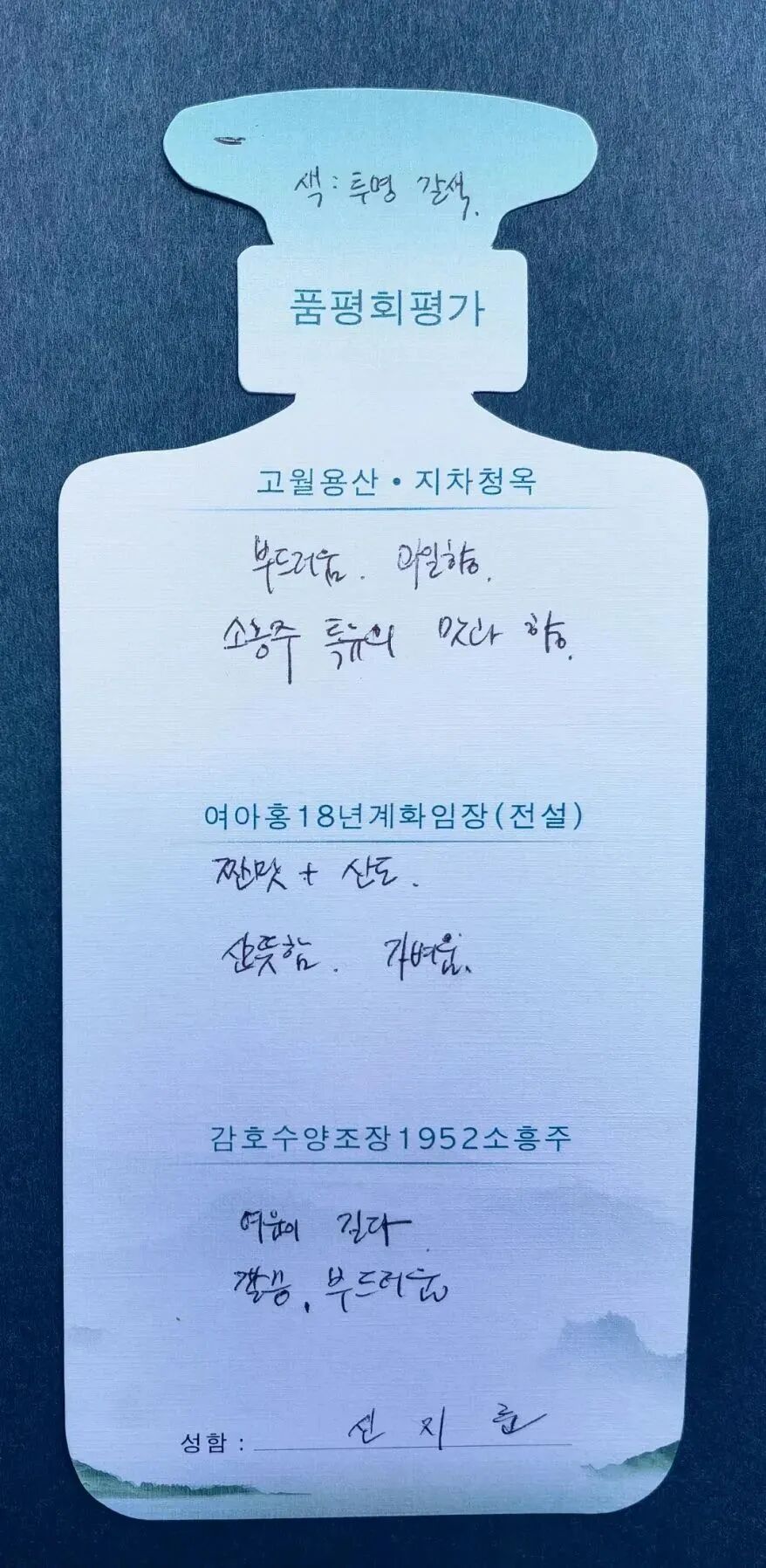 鉴湖1952:具有杏仁及红糖等甜香,喝到嘴里后瞬间蔓延开来的酸味与甜味调和,后味好。