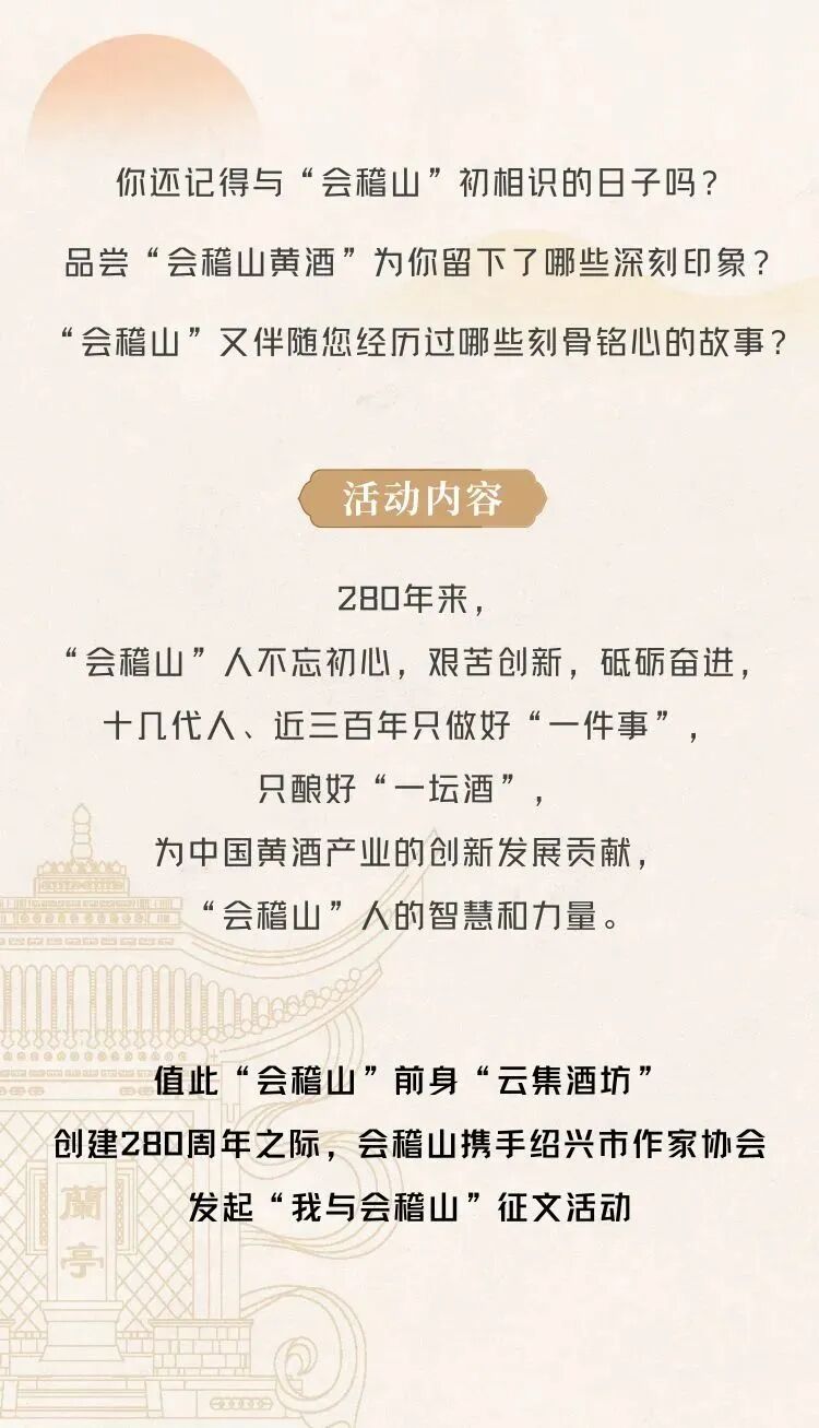 【会稽山】“280周年 我和会稽山的故事”征文活动正式开启