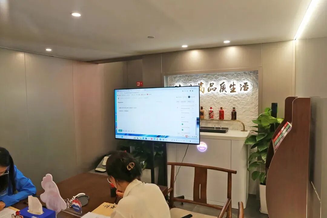 此外,大家还结合当下流行的Chat-GPT技术进行别具创意的书法创作,员工们在GPT程序里输入有关茅台和立夏的关键词,系统生成诗词,通过传统文化与现代技术的碰撞,大家在手工纸扇上完成了一幅幅诗词书法作品。