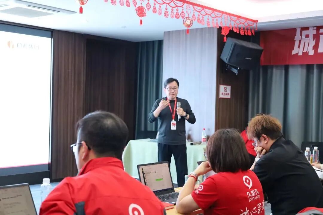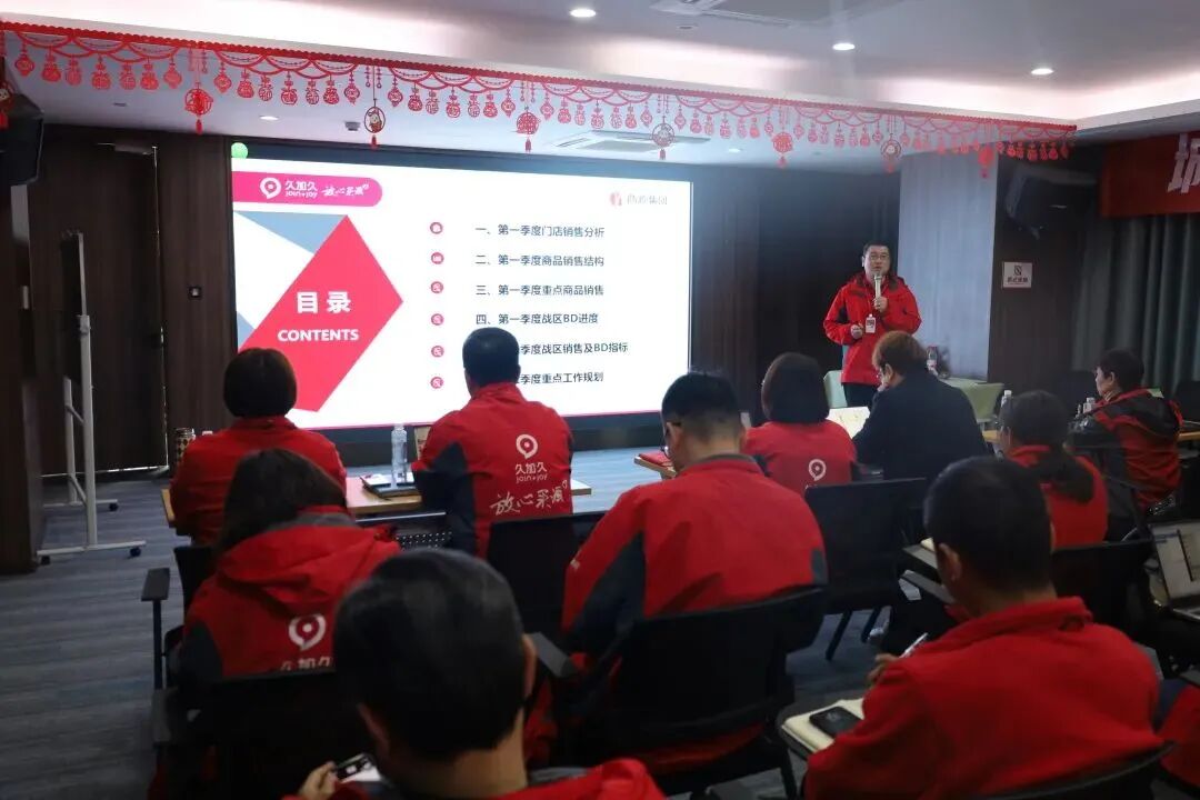 久加久新零售事业部总经理俞总作整体工作的总结发言,2023年开篇以来,疫情影响下,一季度工作中面临多种挑战和变化,首先对本季度工作取得的进展和成绩给予了肯定和鼓励,在各部门的团结协作、积极配合下,较好的完成公司各项工作。同时围绕公司年度目标进行“分解”,顺应外界的变化,积极应变做出细化解决方案,对久加久各战区、各职能部门的汇报给予了建设性的建议。