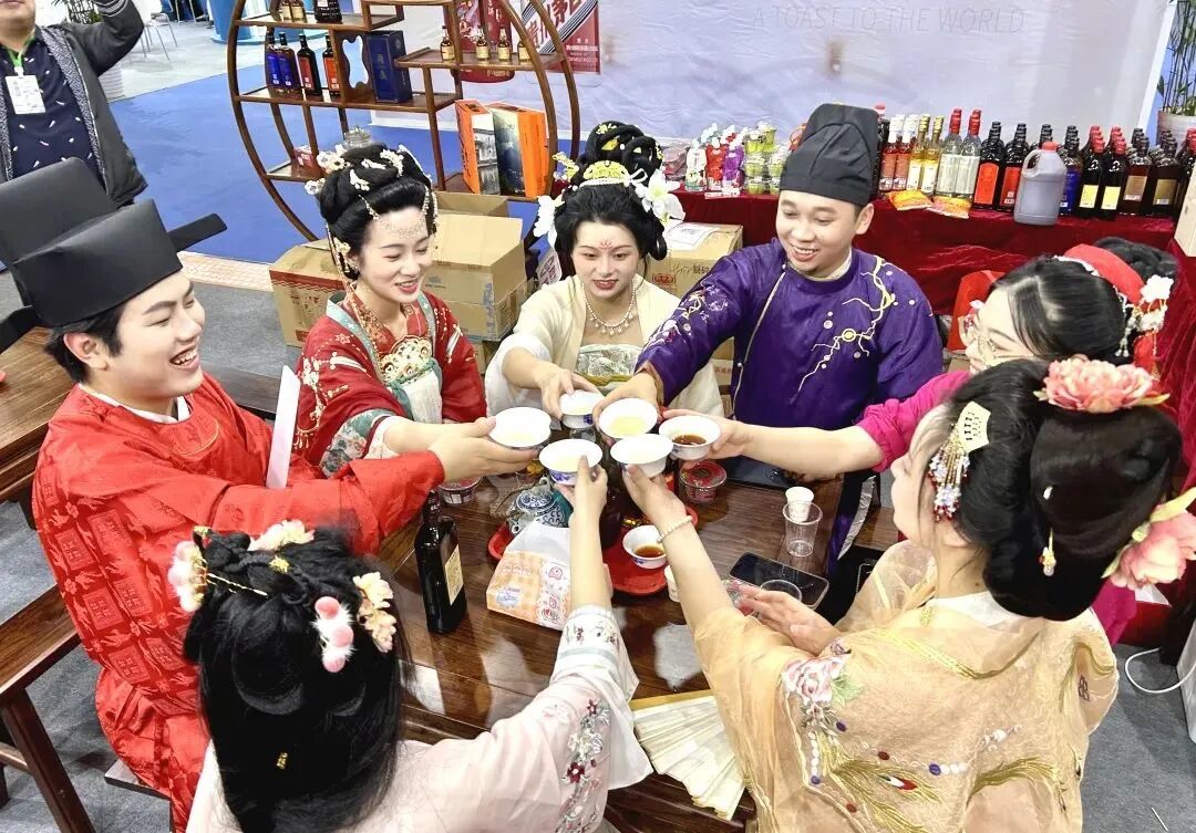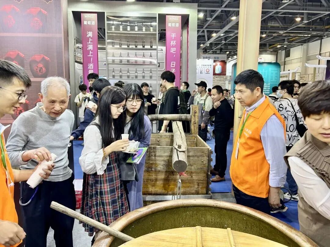 本次展会,致中和除了来带C位大咖“五加皮酒”,还有养生酒、白酒、果酒、黄酒、蜜酒等近10种不同品类,吸引不少参观者驻足品尝!