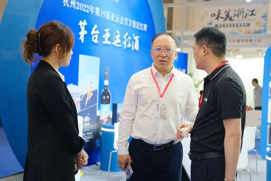 ▲浙江省酒类流通协会副会长徐斌毅亲临展会现场参观指导。