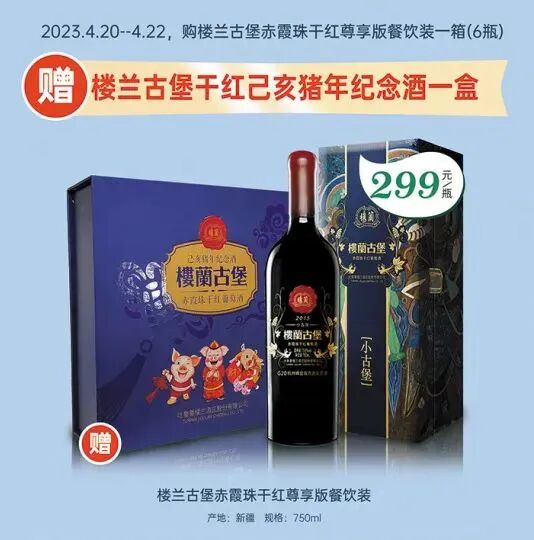 购楼兰古堡赤霞珠干红尊享版750ml赠送楼兰古堡猪年礼盒一盒!