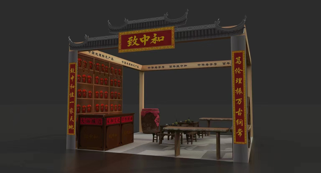 浙江老绍坊酒业,是一家蕴含湖州黄酒文化、有着200余年传承历史的酒企。本次老绍坊酒业展位以国潮风格为主,整个展位将品牌主色调与“千里江山图”元素相融合,体现出“中国文化,东方美学”的定位。