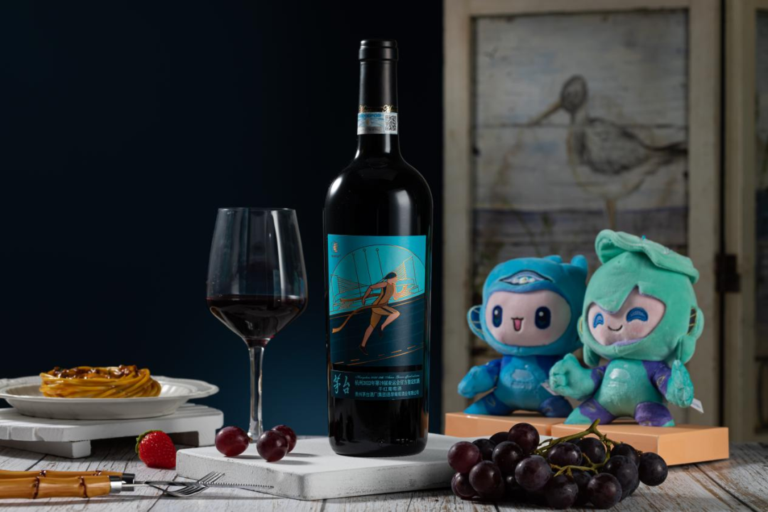 茅台葡萄酒杭州2022年第19届亚运会官方指定红酒以赤霞珠、西拉为原料,经穗选、粒选,采用混酿工艺橡木桶陈酿6-10个月,经茅台葡萄酒专家团队指导,酿酒师团队精心酿造。