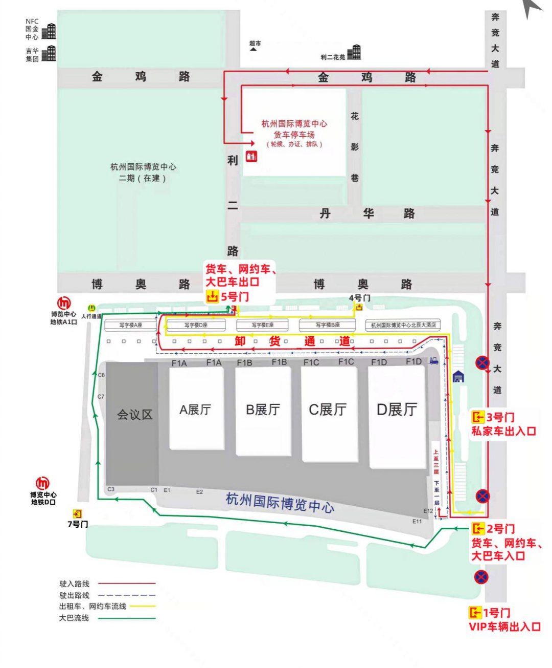奔竞大道东北方向至西南方向行驶至杭州国际博览中心3号门,可以将车辆停在-1层或-2层的停车场,然后沿着地标和指示牌前往E18入口。