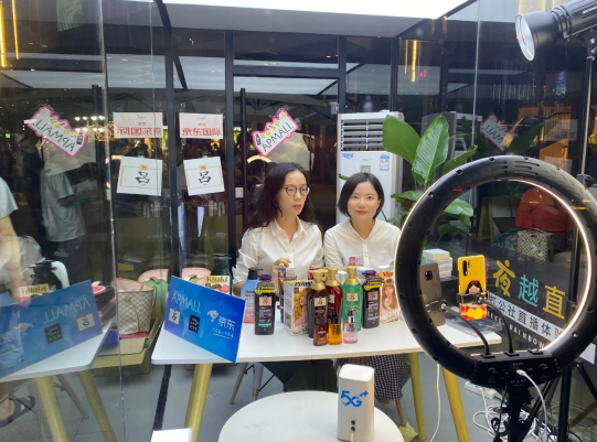 业务员化身“九堡姐妹花”直播带货美妆产品。物产中大云商供图