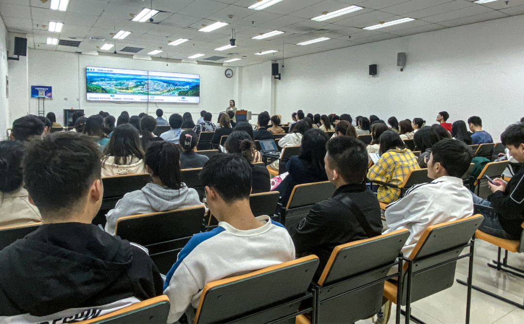 宣讲会现场,座无虚席。来自各个专业的毕业生们在认真听完宣讲后,一边积极互动,一边仔细询问关于岗位职责、工作时间、薪资待遇、晋升机会等方面的内容,以最好的准备投递心仪岗位。