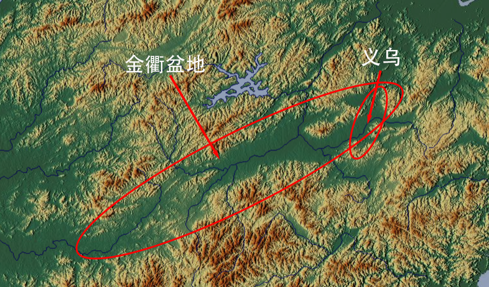 义乌地处金衢盆地东部,市境东、南、北三面群山环抱,西部多丘陵,义乌江穿流而过,是个溪流纵横的小盆地。