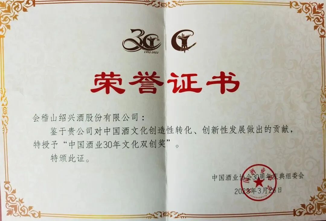 在会上,会稽山绍兴酒股份有限公司(以下简称会稽山)被授予“中国酒业30年文化双创奖”和“中国酒业30年科技成果奖”,已故会稽山(原东风酒厂)党支部书记,“绍兴黄酒酿制技艺"唯一的国家级非遗传承人王阿牛被追授“中国酒业30年终生功勋奖”荣誉称号。虞伟强,会稽山前任董事长被授予“中国酒业30年功勋人物奖”荣誉称号。杨国军,会稽山党委委员、党群办公室主任被授予首届“中国酒业优秀文化遗产工作者”荣誉称号。