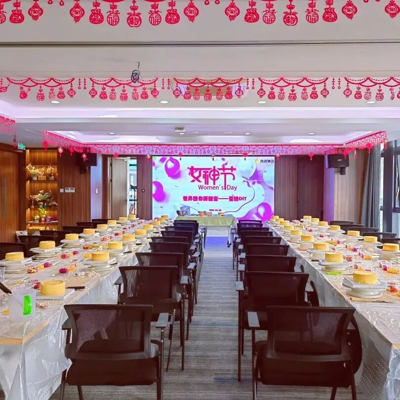 本次活动在集团大楼四楼培训中心开展,现场摆好了女神们DIY需要的蛋糕胚、奶油、转台、抹刀、水果、饼干等,氛围感满满。