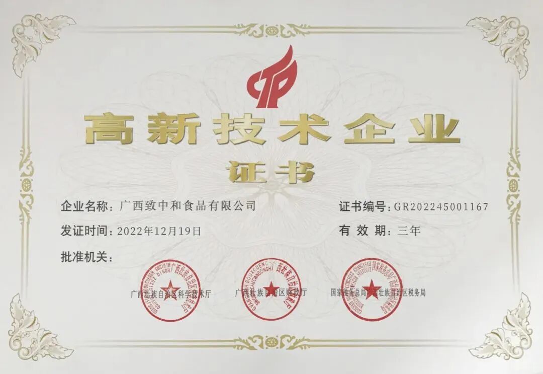 近日,2022年“国家高新技术企业”资质认定名单相继出炉,“浙江致中和实业有限公司”、“广西致中和食品有限公司”均榜上有名。