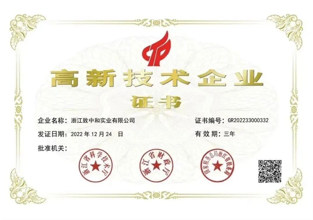 2019年浙江致中和实业有限公司荣获“国家高新技术企业”称号,此次再获殊荣是一份肯定,更是一种力量。