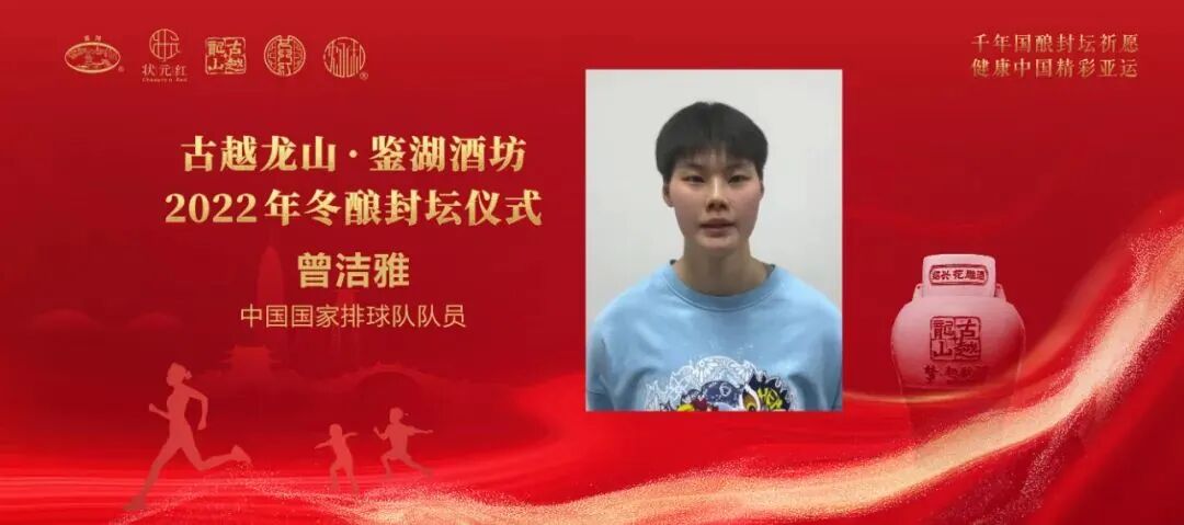 正在集训的中国国家排球队、曾经古越龙山排球队队员曾洁雅发来视频。她首先感谢家乡中国黄酒第一品牌古越龙山对青少年排球运动的支持。正因为古越龙山的赞助支持和充足的训练保障,使她们能够在国家女排前主教练俞觉敏的带队下训练。她说:“古越龙山不仅是在支持我们,同时也在支持中国排球,为国家储备更多的人才。希望今后的道路上,我能够更多为国家争光,为古越龙山争光。同时也祝杭州亚运会成功举办,祝古越龙山香飘世界。”