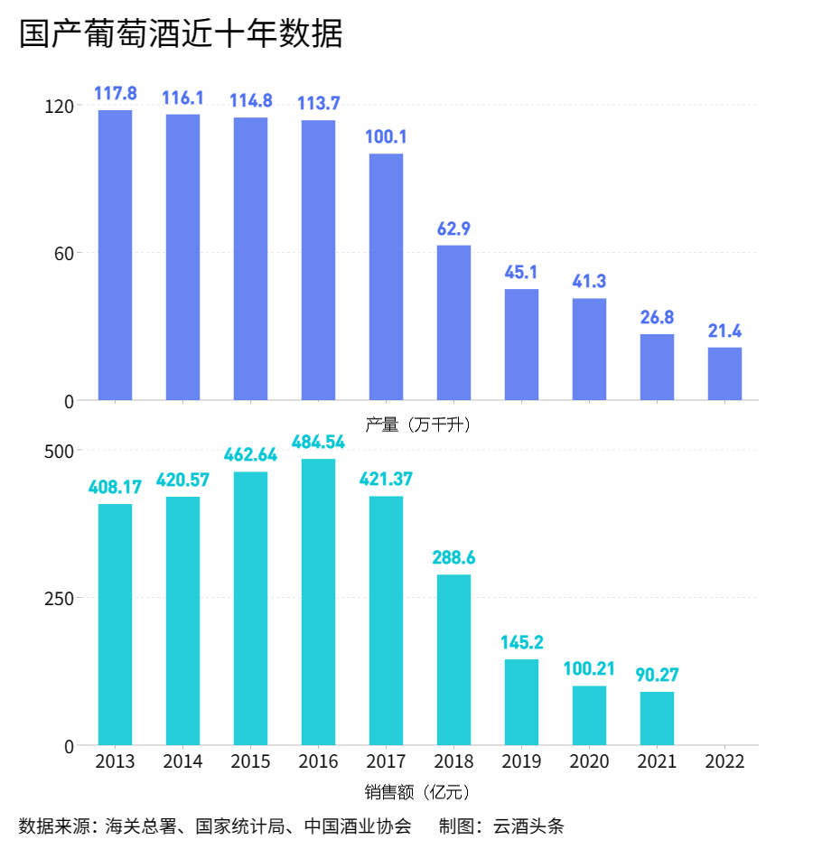 而2022年进口葡萄酒市场所面临的严峻形势,对于国产葡萄酒而言,同样存在。