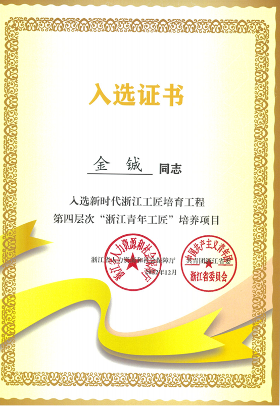 近日,由浙江省人力资源和社会保障厅、共青团浙江省委共同组织实施的“浙江青年工匠”培养项目下发入选证书,浙商糖酒集团有限公司青年骨干金铖成功入选。