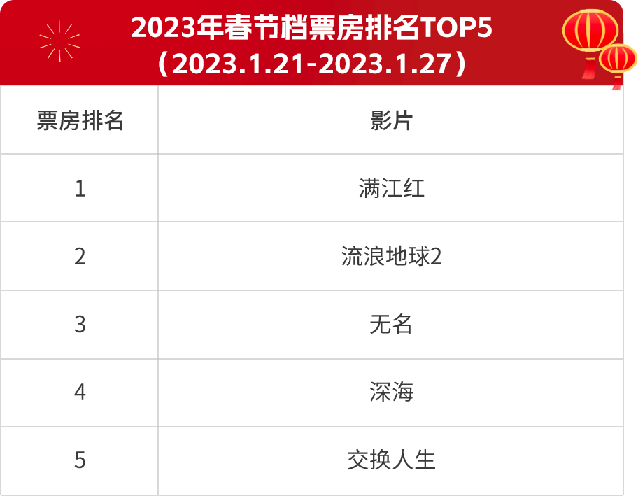 过年陪家人一起看场电影成为很多人的选择,春节档靠口碑强势反弹,市场表现振奋人心。《满江红》、《流浪地球2》、《无名》等多部佳作口碑票房双丰收。