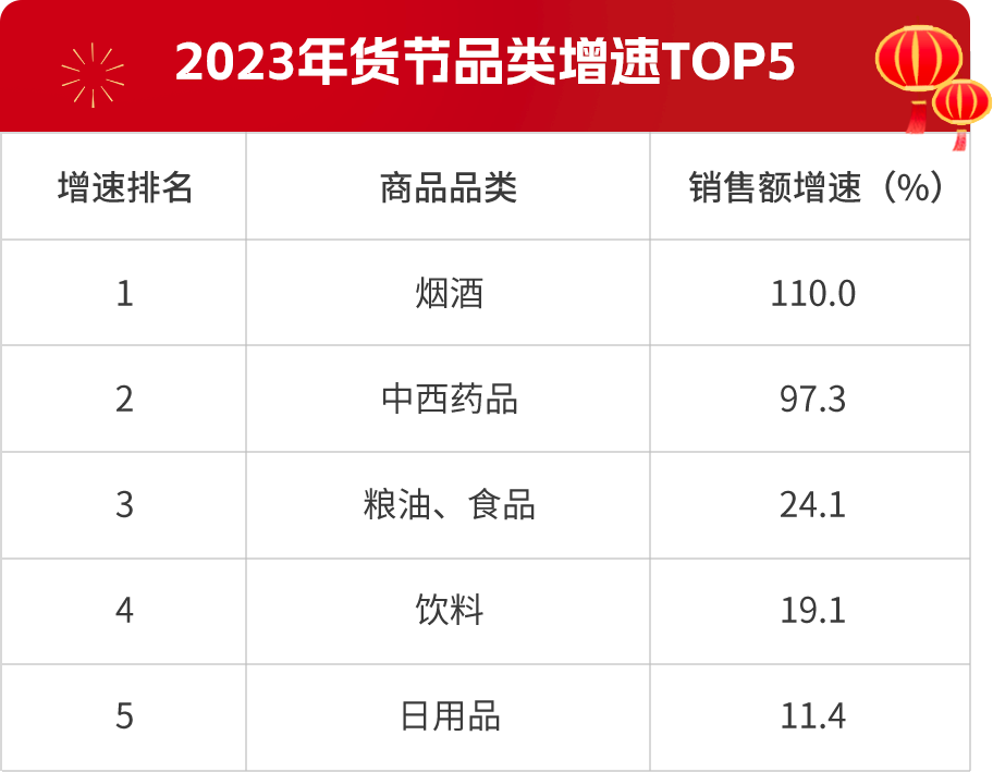 年货节期间,烟酒、中西药品、粮油食品位列增速榜前三。随着消费者对于疫情的恐惧心理持续弱化,宴席和送礼市场受益于返乡潮复苏明显,白酒作为走亲访友和聚餐中必不可少的硬通货,迎来开门红,增速较去年有明显提升。