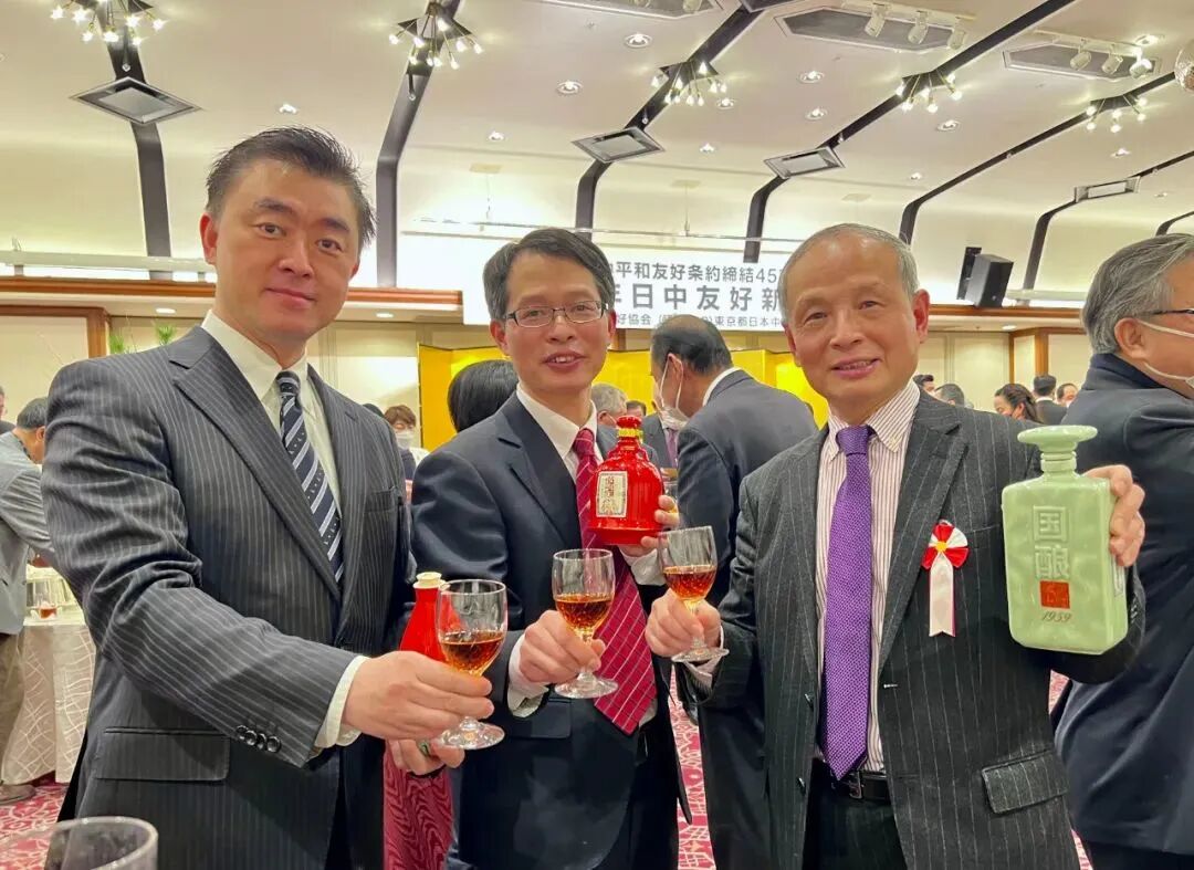 日中友协副会长、东京都日中友协会长宇都宫德一郎代表主办方致辞。去年迎来了中日邦交正常化50周年,今年正值《中日和平友好条约》缔结45周年,中国驻日大使孔铉佑、日本外务副大臣武井俊辅、公明党党首山口那津男先后致辞,送上深切祝福,表达了建立良好稳定的中日关系的愿景。随后,日中协会会长野田毅致祝酒辞,在场嘉宾举杯同庆。