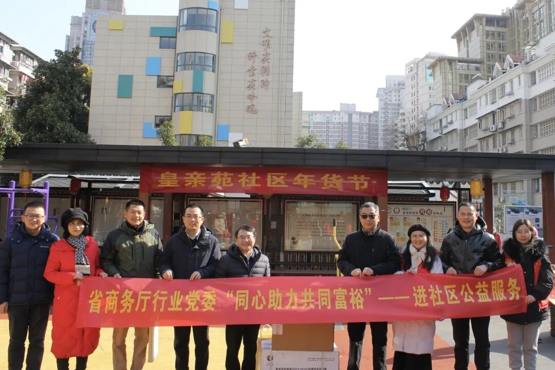 1月16日上午,由浙江省商务厅直属机关党委、浙江省商务厅行业协会商会党委、杭州市拱墅区天水街道党工委联合主办,浙江省省酒类流通协会、省农产品流通协会、省商务发展研究会等商协会共同承办的“同心助力 共同富裕”——进社区公益服务年货节活动在天水街道皇亲苑社区文化广场举行。省商务厅党组成员、副厅长、直属机关党委书记张钱江,杭州市拱墅区天水街道党工委书记卢名辉,省商务厅机关党委专职副书记、一级调研员李庆荣,行业党委副书记、法规处二级调研员单军,杭州市拱墅区天水街道党工委委员叶吕等出席活动。