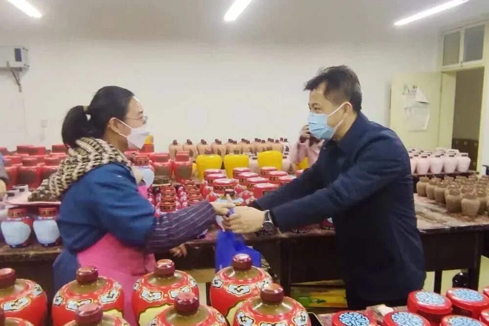 在沈永和酒厂,孙爱保董事长亲切慰问一线员工,给他们送上节日祝福和慰问品。