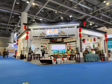 绍兴馆展区布置稻米丰收和“只此青玉”元素场景,现场展示国酿古越龙山青玉酒,并为到访嘉宾提供黄酒品鉴,突出馆区“鉴湖稻、绍兴酒”的特色主题。