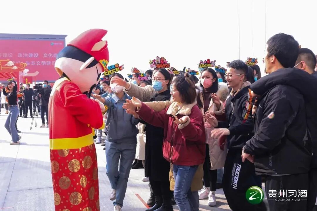习酒运营中心广场上,人头攒动、热闹非凡。伴随着雄厚响亮的礼炮声及热情洋溢的舞蹈,迎春游园活动正式拉开序幕,两大“财神”尽情为舞动的习酒职工发放红包。