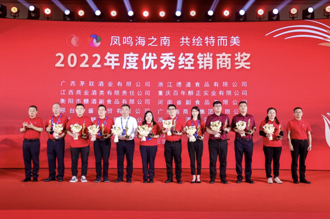大会还对2022年作出突出贡献的茅台葡萄酒经销商进行了表彰,由茅台葡萄酒公司党委委员、副总经理杨亮宣读表彰决定,由集团领导和葡萄酒公司领导分别颁发了文化相合奖,优秀经销商奖,管服结合奖,品牌聚合奖、资源整合奖五大奖项。鼓励茅台葡萄酒的经销商在2023年再接再厉,与厂家一起形成厂商命运共同体,共同推动茅台葡萄酒的业绩再上一层楼。