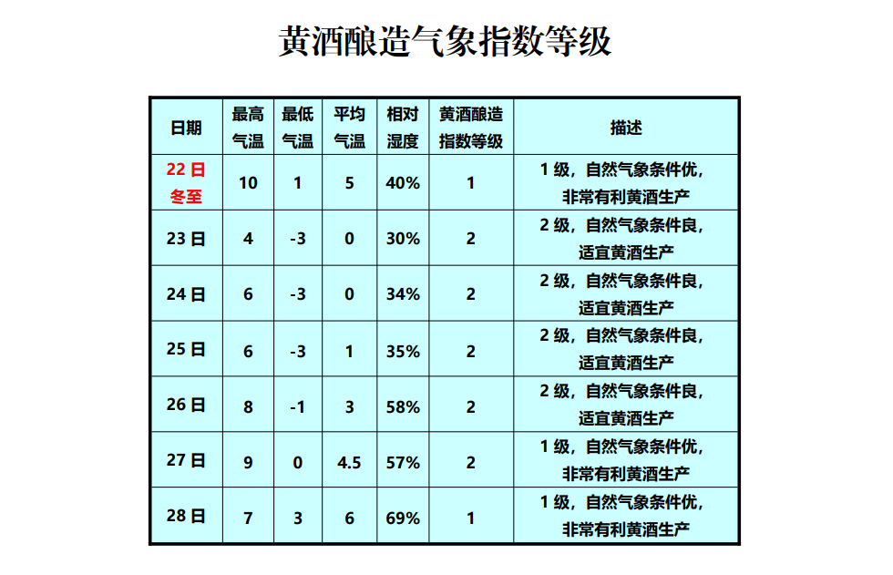 农历冬至,绍兴黄酒集团与绍兴市气象服务中心联合发布“黄酒酿造气象指数等级”,用科学的方式讲解气温、湿度等因素对黄酒酿造的影响,这是国内首次发布黄酒酿造气象指数等级。