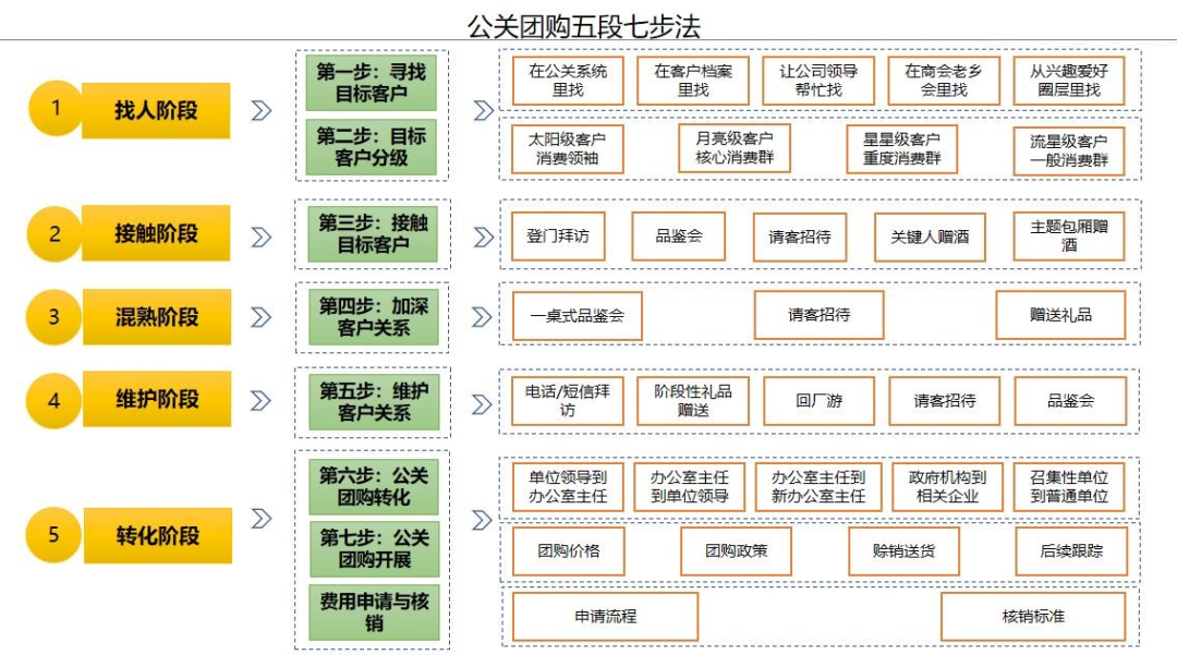 和君咨询整理的公关团购五段七步法,详述了整个交易流程。