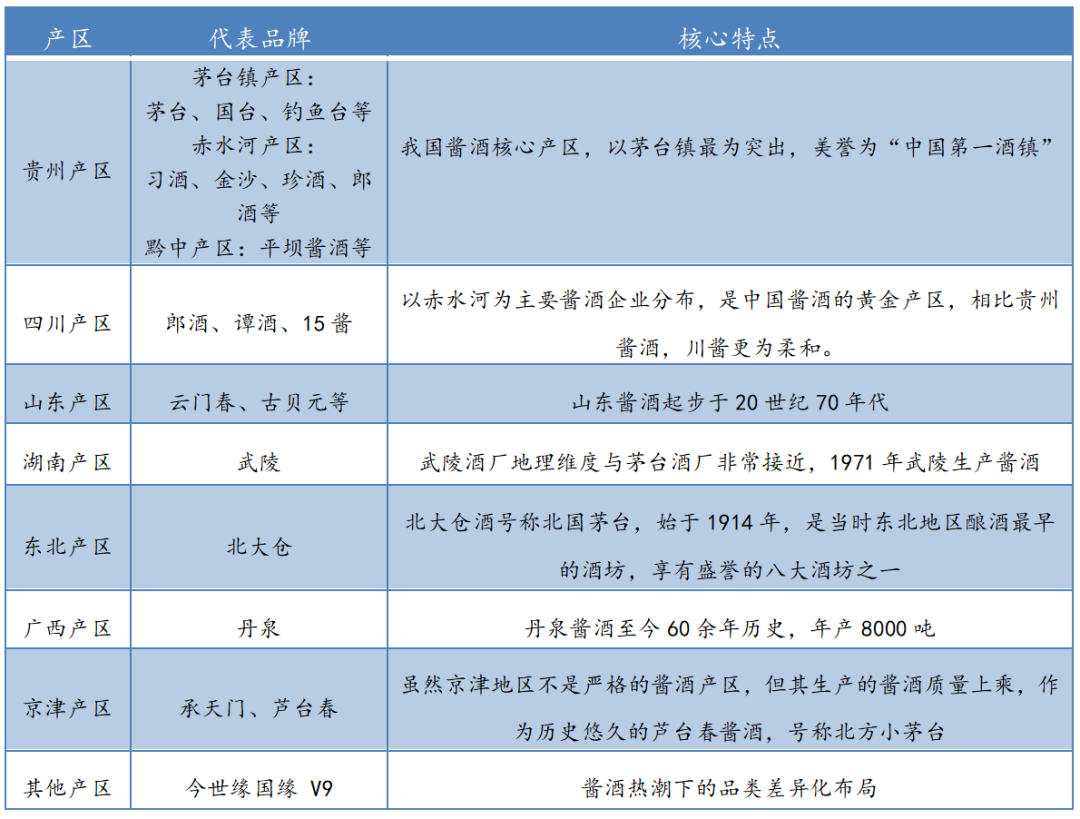 3. 产区多元:成熟的产业一定不是单一的产区所有,酱酒产区多元恰恰是酱酒逐步走向成熟的标志之一。一批贵州老名酒的发展,依托原有特色产区的打造,必然成为新一轮行业增长的动力源泉。随着酱酒热潮愈演愈烈,依托产区概念的竞争格局也在不断发生变化,酱酒产区格局发展经历了从小到大,从点到面的变迁,由过去茅台镇核心产区发展为仁怀中心产区,扩大到赤水河黄金酱酒带,又到贵州其他特色产区,再到其他酱酒省区不断扩大。酱酒的繁荣,离不开由点到面的跨区域产区的快速发展。