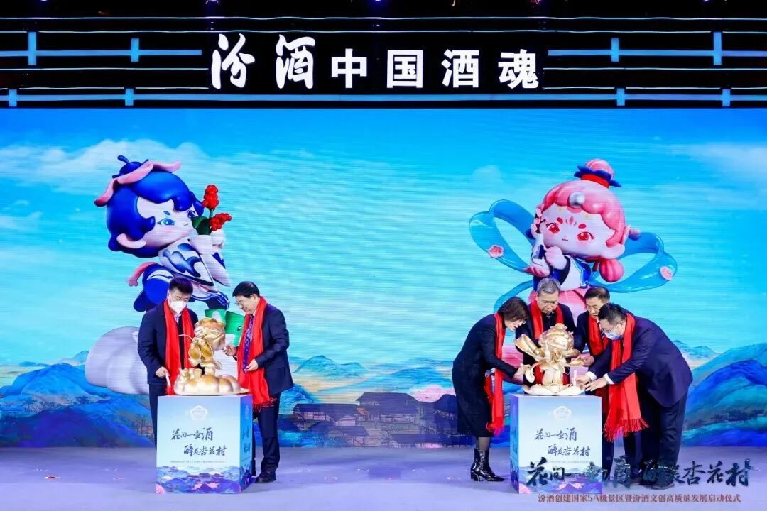 在与会领导王宏晋、袁清茂、王爱琴、刘英魁、王琳、杨春权的共同见证下,汾酒文创IP形象“杏花花”与“汾宝宝”正式首发。此次启动仪式以“花间一壶酒,醉美杏花村”为主题,现场唯美的场景让人宛若置身杜甫笔下所描绘的杏花村之中,穿越古今移步易景,每一处都定格成一个独一无二的文化场景,将为汾酒后续创A及文创开发工作持续推进打下良好的基础,大力打造汾酒旅游品牌形象,营造支持旅游、参与旅游、发展旅游的良好氛围,汾酒集团以“文化+”“旅游+”的思路,将高起点高标准高品位推进文化旅游板块创新发展,实现更高层次的产业协同,推动汾酒全方位高质量发展。