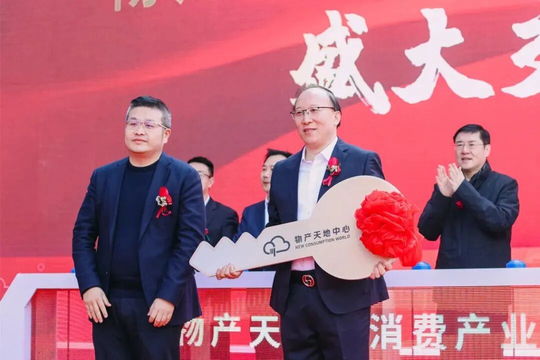 周骆斌与物产中大云商董事长徐斌毅进行了“金钥匙”交接仪式,在现场嘉宾的共同见证下,物产天地新消费产业园正式扬帆起航。