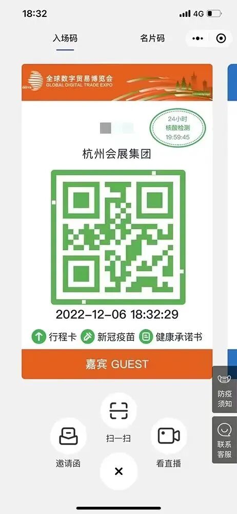 (1)入场前确保数贸会官方小程序按“+”按钮可正常亮码,以便使用“一码通行”服务进入各展区;