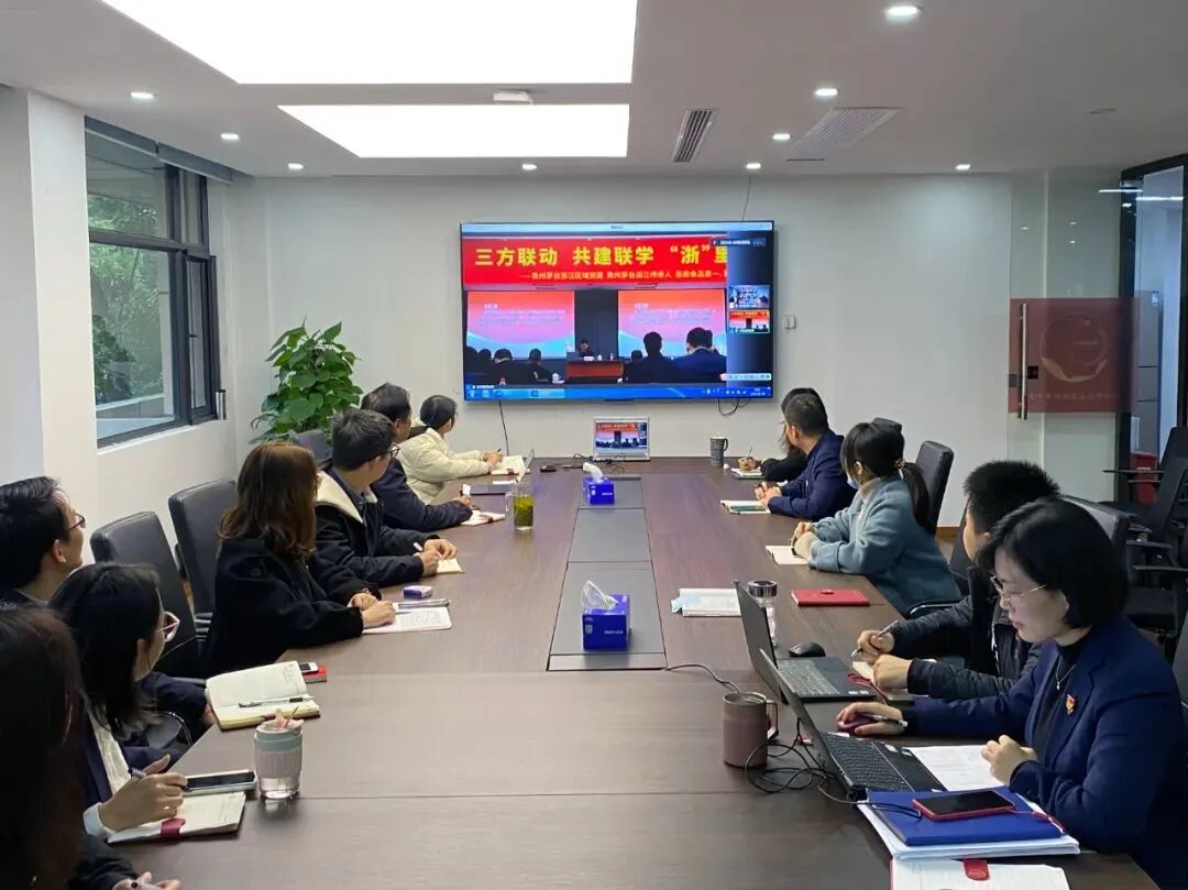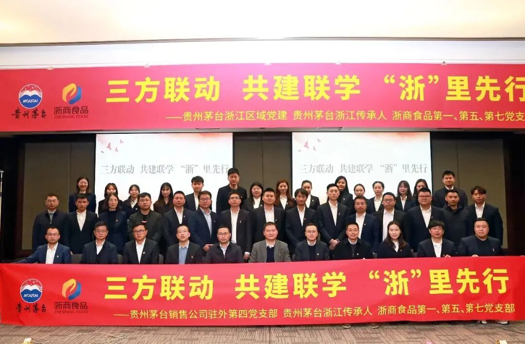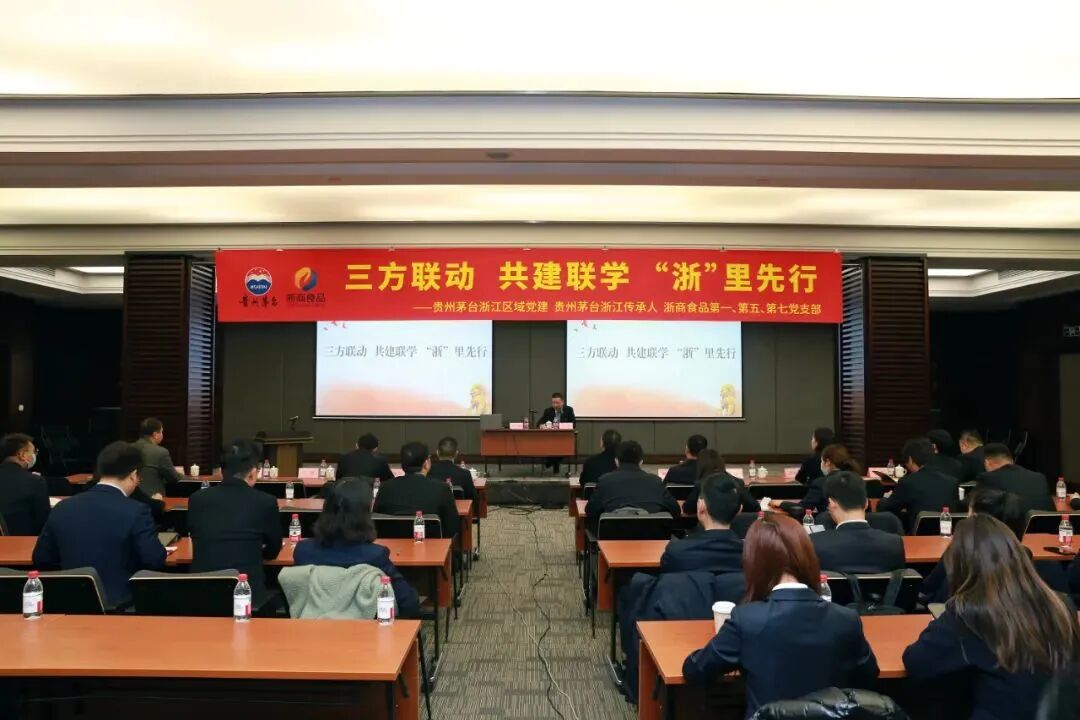 为认真学习宣传贯彻党的二十大精神,引导党员群众把思想和行动统一到党的二十大精神上来,在全面学习、全面把握、全面落实上下功夫,进一步锚定力量,凝聚共识,踔厉奋发,勇毅前行,浙商食品第五党支部联合茅台集团驻浙江区域、经销商代表、茅台传承人开展党建共建活动。贵州茅台生态农业产业发展公司党委副书记、总经理邝英,浙商食品党委书记、董事长张红伟,浙商食品党委委员、副总经理朱忠华,贵州茅台酒销售有限公司、贵州茅台酒厂保健酒业有限公司、贵州茅台酒厂昌黎葡萄酒业有限公司、贵州茅台酱香酒营销有限公司、法律合规部驻浙江省区全体员工,浙商食品第一、第五、第七支部党员进行党课交流。