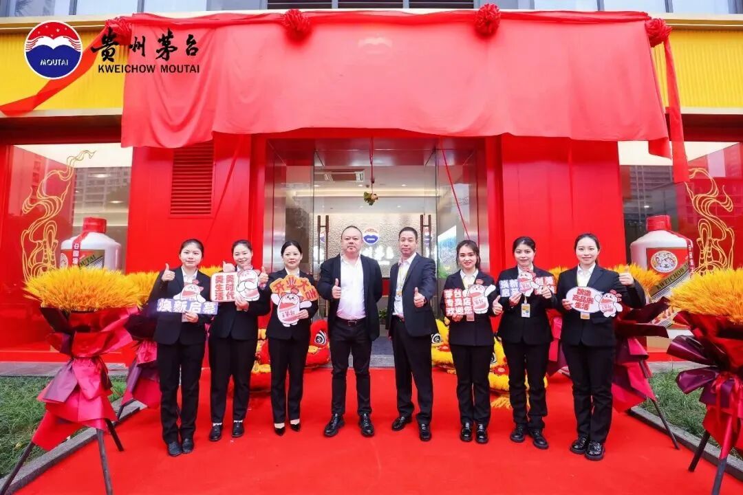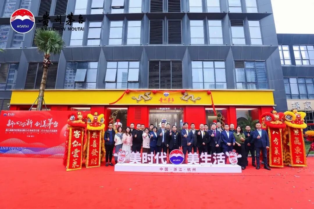 伴着礼炮轰鸣、金带纷飞,浙江商源共好贸易有限公司第三代茅台专卖店揭开红色帷幕,开门大吉纳百川,共启茅台美新章。
